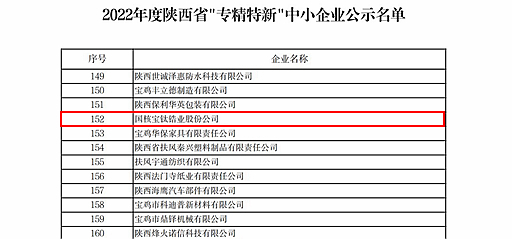 近日,公司成功入選陜西省工業和信息化廳、陜西省財政廳公布的2022年陜西省“專精特新”中小企業名單。此次入選是陜西省對企業在專業化、精細化及創新能力與成長性等方面的綜合評定與認可,為企業后續可持續發展與轉型升級,強化競爭與綜合實力創造了有利條件。